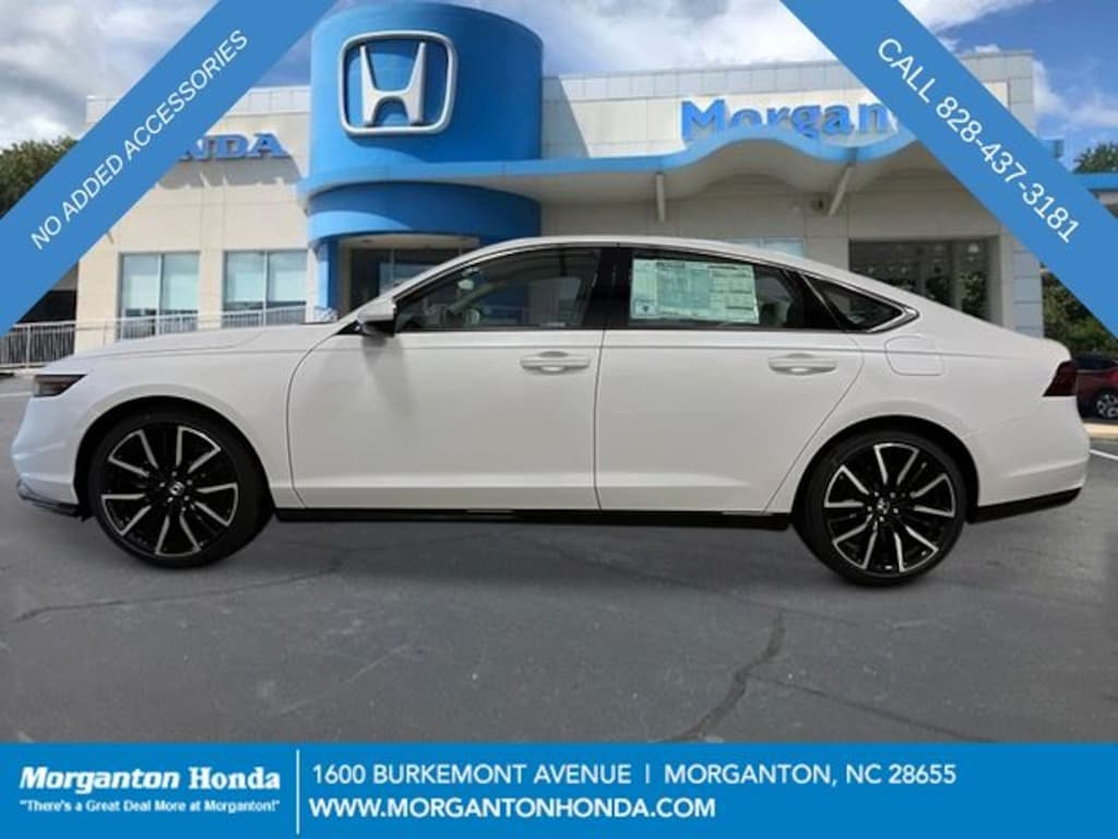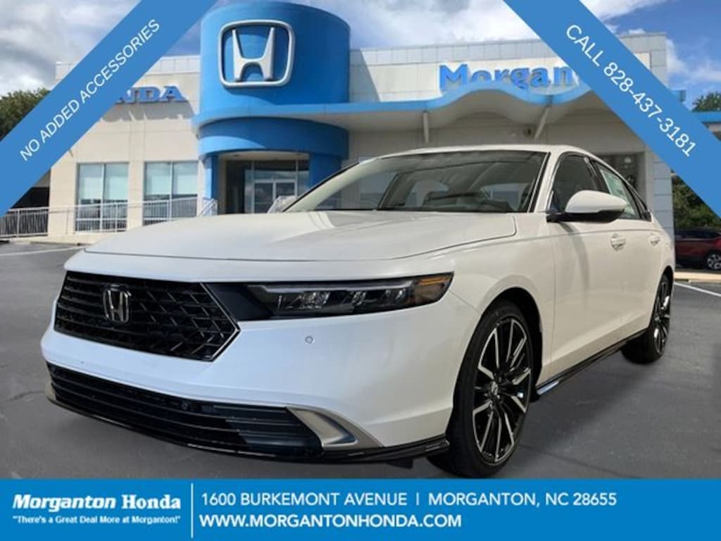 Platinum White 2026 Honda Accord Hybrid Touring CVT 2.0L I4 DOHC 16V, 12 Speakers, 4-Wheel Disc Brakes, ABS brakes, Adaptive Cruise Control: Adaptive Cruise Control (ACC) with Low-Speed Follow, Air Conditioning, Alloy wheels, AM/FM radio, Apple CarPlay/Android Auto, Auto High-beam Headlights, Auto-dimming Rear-View mirror, Automatic temperature control, Blind Spot Information (BSI) System warning, Bose Premium Sound System, Brake assist, Bumpers: body-color, Compass, Delay-off headlights, Driver door bin, Driver vanity mirror, Dual front impact airbags, Dual front side impact airbags, Electronic Stability Control, Emergency communication system: HondaLink, Exterior Parking Camera Rear, Four wheel independent suspension, Front anti-roll bar, Front Bucket Seats, Front Center Armrest, Front dual zone A/C, Front reading lights, Fully automatic headlights, Heads-Up Display, Heated and Ventilated Front Bucket Seats, Heated door mirrors, Heated front seats, Heated rear seats, Heated steering wheel, Illuminated entry, Knee airbag, Lane departure: Lane Keeping Assist System (LKAS) active, Leather Shift Knob, Leather steering wheel, Leather-Trimmed Seat Trim, Low tire pressure warning, Memory seat, Navigation System, Occupant sensing airbag, Outside temperature display, Overhead airbag, Overhead console, Panic alarm, Passenger door bin, Passenger vanity mirror, Power door mirrors, Power driver seat, Power moonroof, Power passenger seat, Power steering, Power windows, Radio data system, Rain sensing wipers, Rear anti-roll bar, Rear reading lights, Rear seat center armrest, Rear side impact airbag, Rear window defroster, Remote keyless entry, Security system, Speed control, Speed-sensing steering, Speed-Sensitive Wipers, Split folding rear seat, Steering wheel mounted audio controls, Telescoping steering wheel, Tilt steering wheel, Traction control, Trip computer, Turn signal indicator mirrors, Variably intermittent wipers, Ventilated front seats, Wheels: 19" x 8.5J Berlina Black, 2.0L I4 DOHC 16V.
