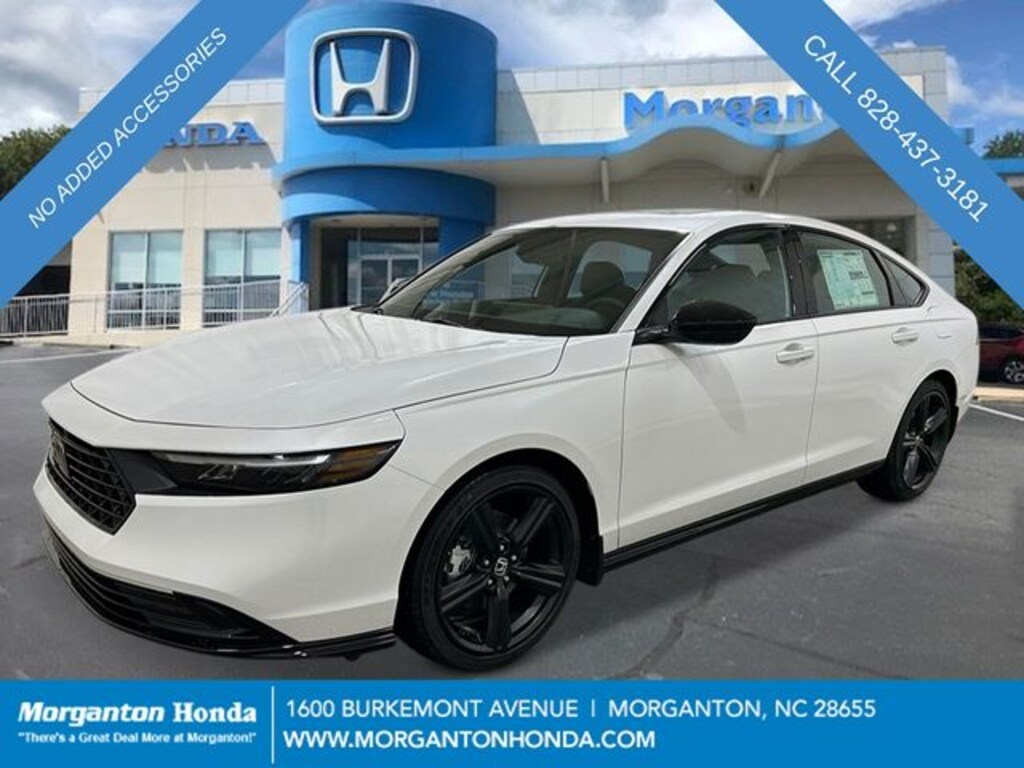 Platinum White 2026 Honda Accord Hybrid Sport-L CVT 2.0L I4 DOHC 16V, 4-Wheel Disc Brakes, 8 Speakers, ABS brakes, Adaptive Cruise Control: Adaptive Cruise Control (ACC) with Low-Speed Follow, Air Conditioning, Alloy wheels, AM/FM radio, Apple CarPlay/Android Auto, Auto High-beam Headlights, Automatic temperature control, Blind Spot Information (BSI) System warning, Brake assist, Bumpers: body-color, Compass, Delay-off headlights, Driver door bin, Driver vanity mirror, Dual front impact airbags, Dual front side impact airbags, Electronic Stability Control, Emergency communication system: HondaLink, Exterior Parking Camera Rear, Four wheel independent suspension, Front anti-roll bar, Front Bucket Seats, Front Center Armrest, Front dual zone A/C, Front reading lights, Fully automatic headlights, Heated Front Bucket Seats, Heated front seats, Illuminated entry, Knee airbag, Lane departure: Lane Keeping Assist System (LKAS) active, Leather Shift Knob, Leather steering wheel, Leather-Trimmed Seat Trim, Low tire pressure warning, Memory seat, Occupant sensing airbag, Outside temperature display, Overhead airbag, Overhead console, Panic alarm, Passenger door bin, Passenger vanity mirror, Power door mirrors, Power driver seat, Power moonroof, Power passenger seat, Power steering, Power windows, Radio data system, Radio: 180-Watt Audio System, Rear anti-roll bar, Rear reading lights, Rear seat center armrest, Rear side impact airbag, Rear window defroster, Remote keyless entry, Security system, Speed control, Speed-sensing steering, Speed-Sensitive Wipers, Split folding rear seat, Spoiler, Steering wheel mounted audio controls, Telescoping steering wheel, Tilt steering wheel, Traction control, Trip computer, Variably intermittent wipers, Wheels: 19" x 8.5J Matte Berlina Black, 2.0L I4 DOHC 16V.